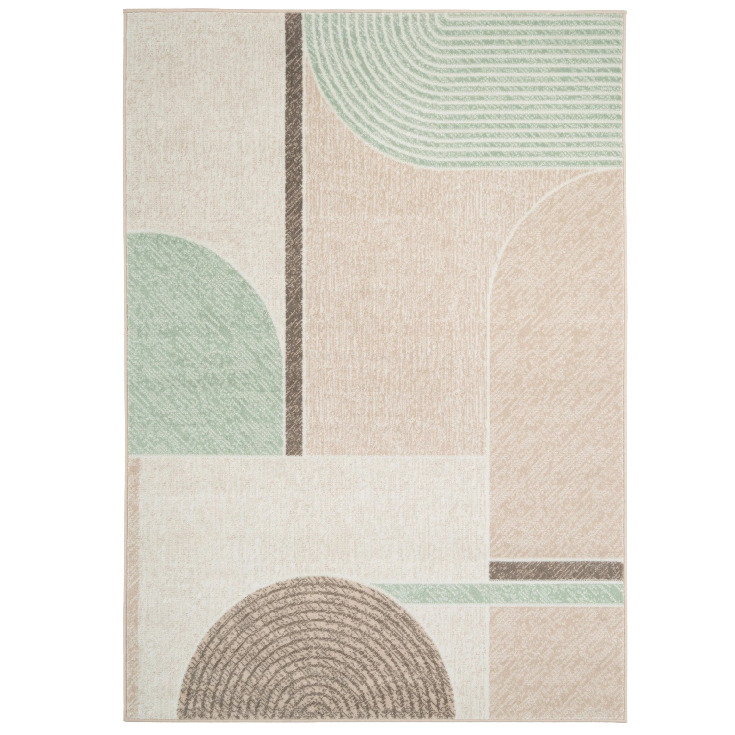 Embodying the essence of Wabi Sabi philosophy, this captivating geometric rug design seamlessly merges soothing greens and harmonizing neutrals, serving as an exquisite conduit to infuse your living space with an aura of tranquility, equilibrium, and serenity.