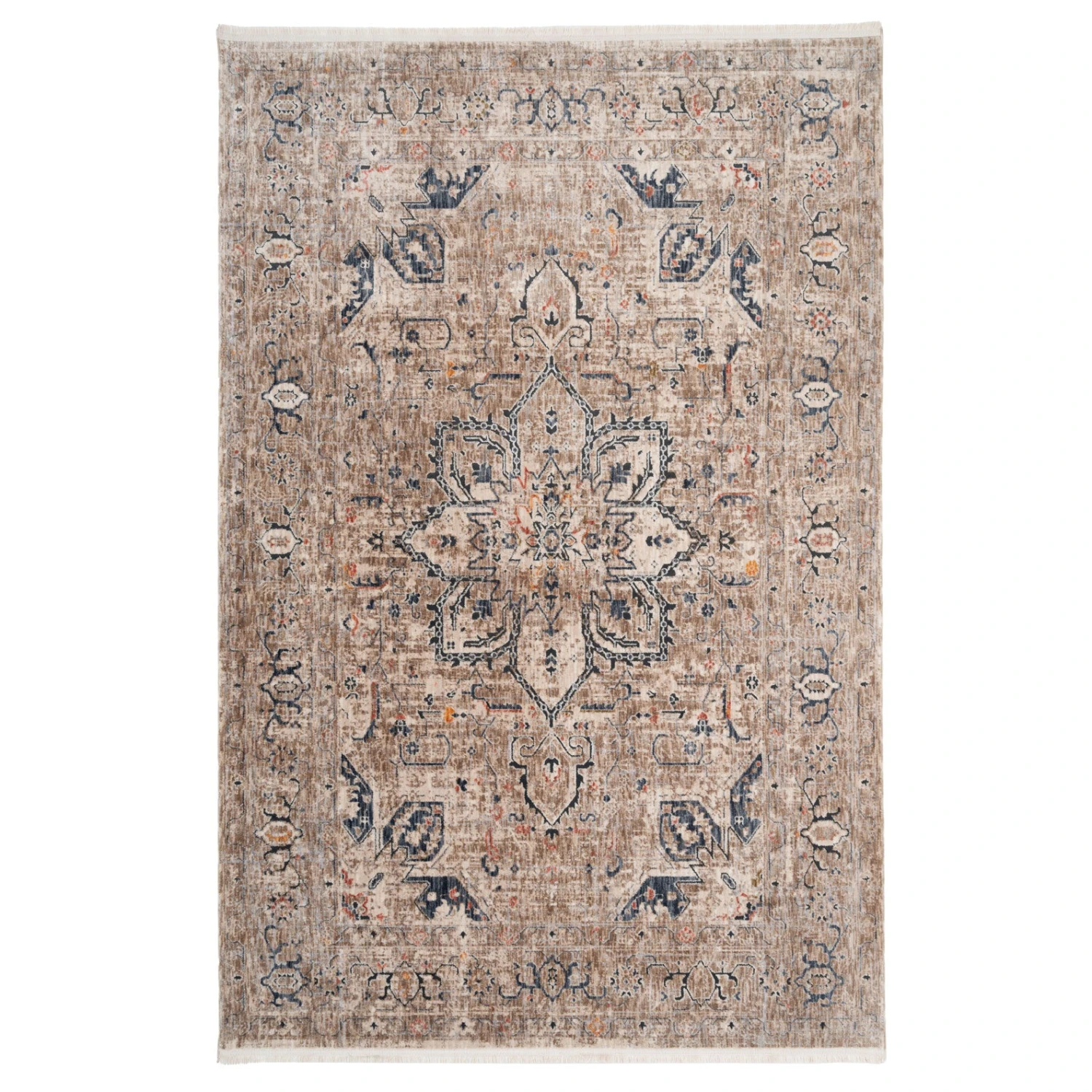 Bring warmth and subtle sophistication to your home with the Blue Terra Medallion Area Rug. Its stunning blue floral medallion sits atop earthy terra tones, creating a luxurious and inviting atmosphere. Perfect for any elegant space.