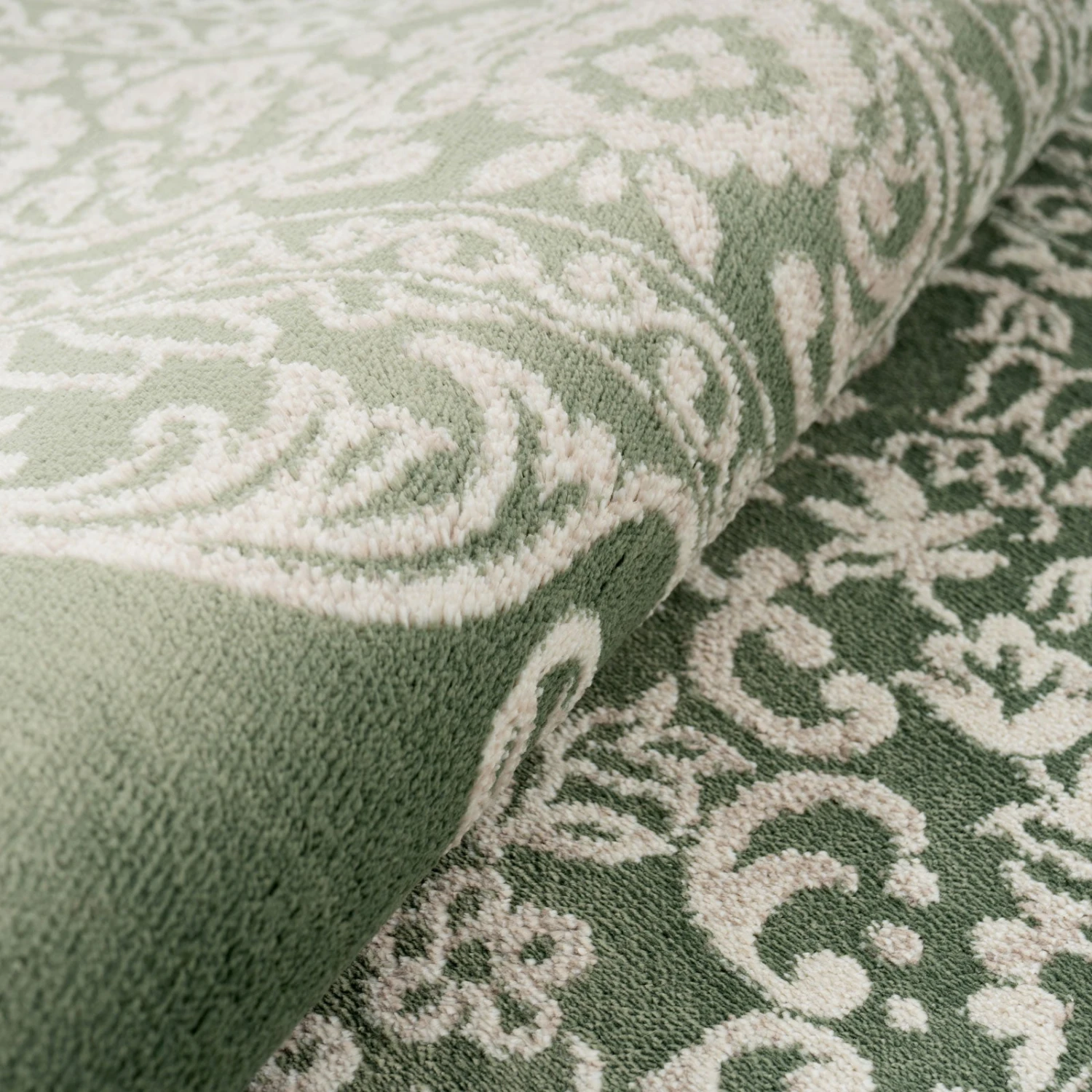 Add a timeless touch of sophistication to any room with the Jamila Green Ornate Medallion Rug. Itsย earthy green tone helps evoke a peaceful feeling, while its ornate central medallion and intricate border pattern bring classic elegance to your interiors.