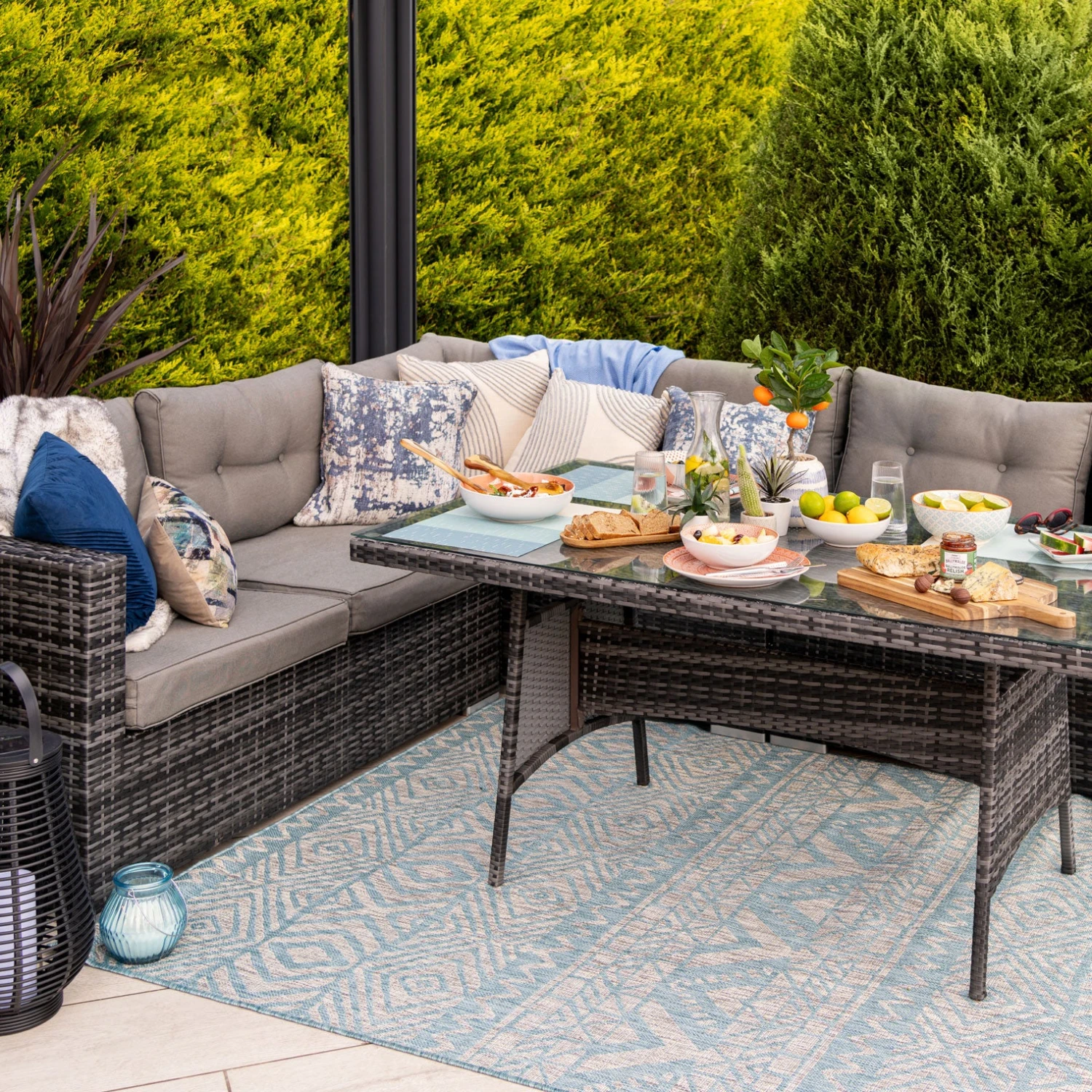 Ruskins soft aztec designย features geometric patterns and shapes . this intricate detail can become your focal point or an anchor in your outdoor seating area.ย