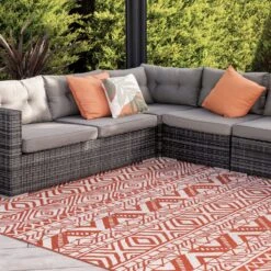 Flatwoven Washable Distressed Terracotta Aztec Boho Rug – Yana
