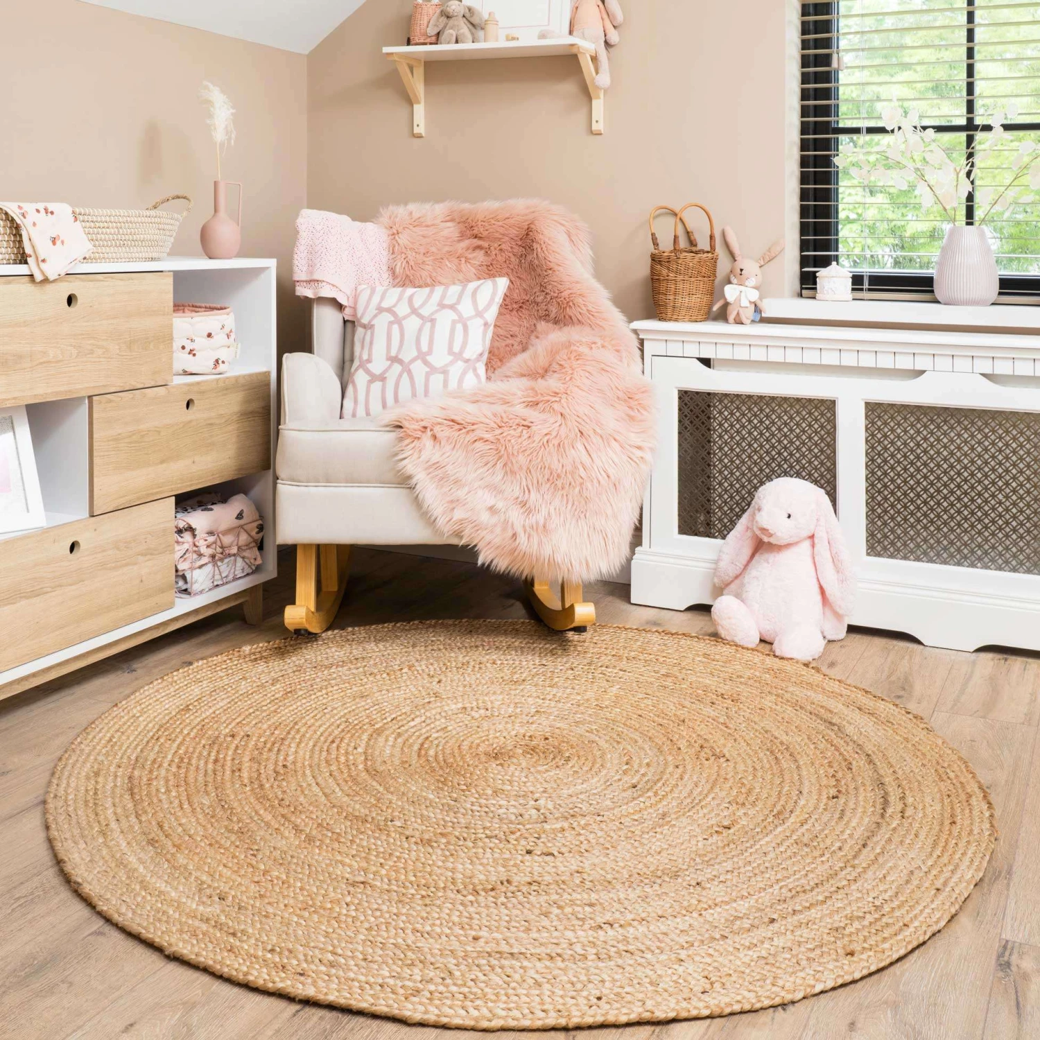 Add some natural muted tones to your little one’s playroom or nursery with our braided jute rug. This on trend circle rug is made from shiney, vegetable fibre that has been spun to create strong and durable threads making this perfect for playtime.ย