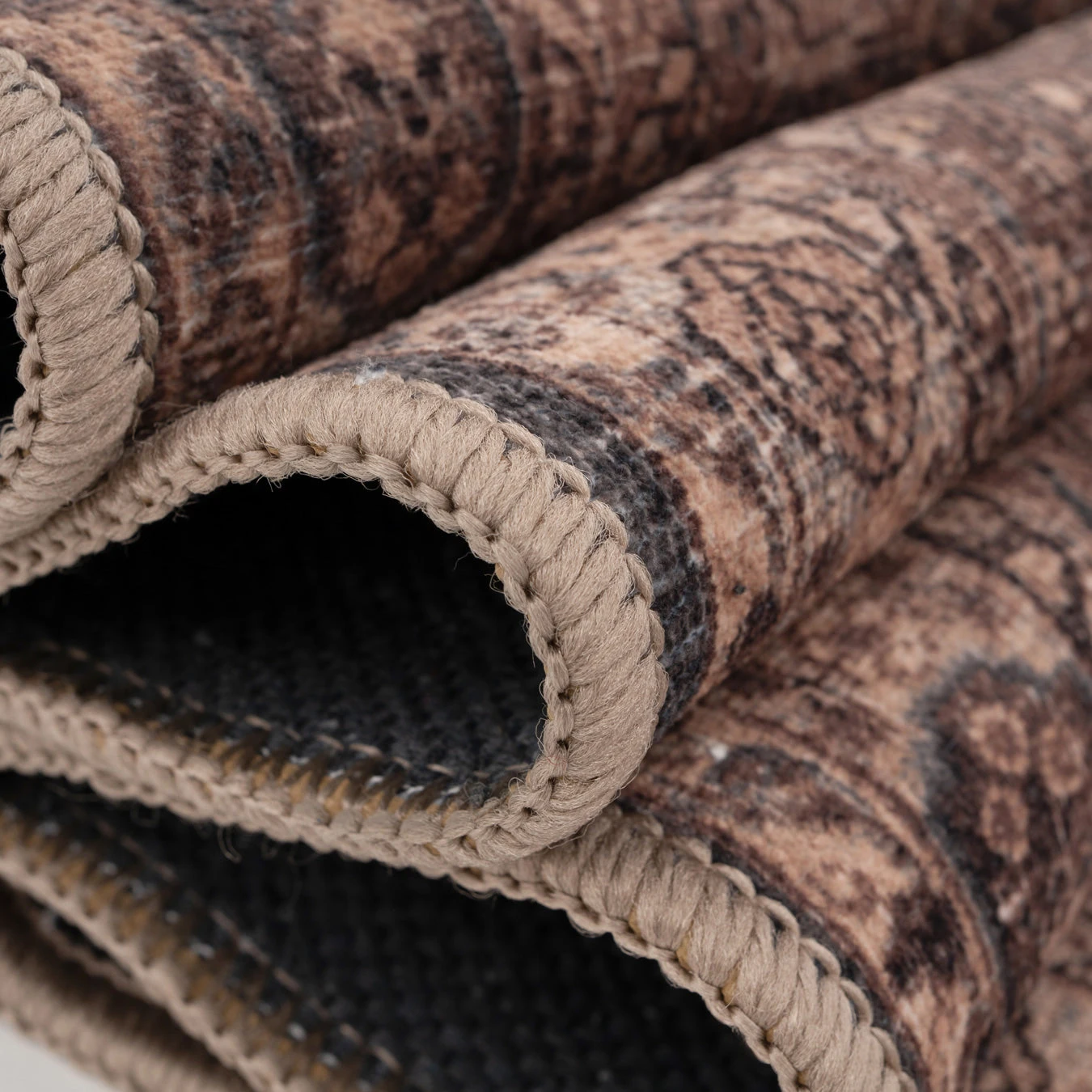 Mabel is effortlessly elegant yet refreshingly down to earth, like the guest who always knows just what to bring. Wrapped in soft beige, taupe, and brown tones, her central medallion and intricate borders whisper timeless charm, while a delicate distressed finish gives her that well-loved, heirloom feel.